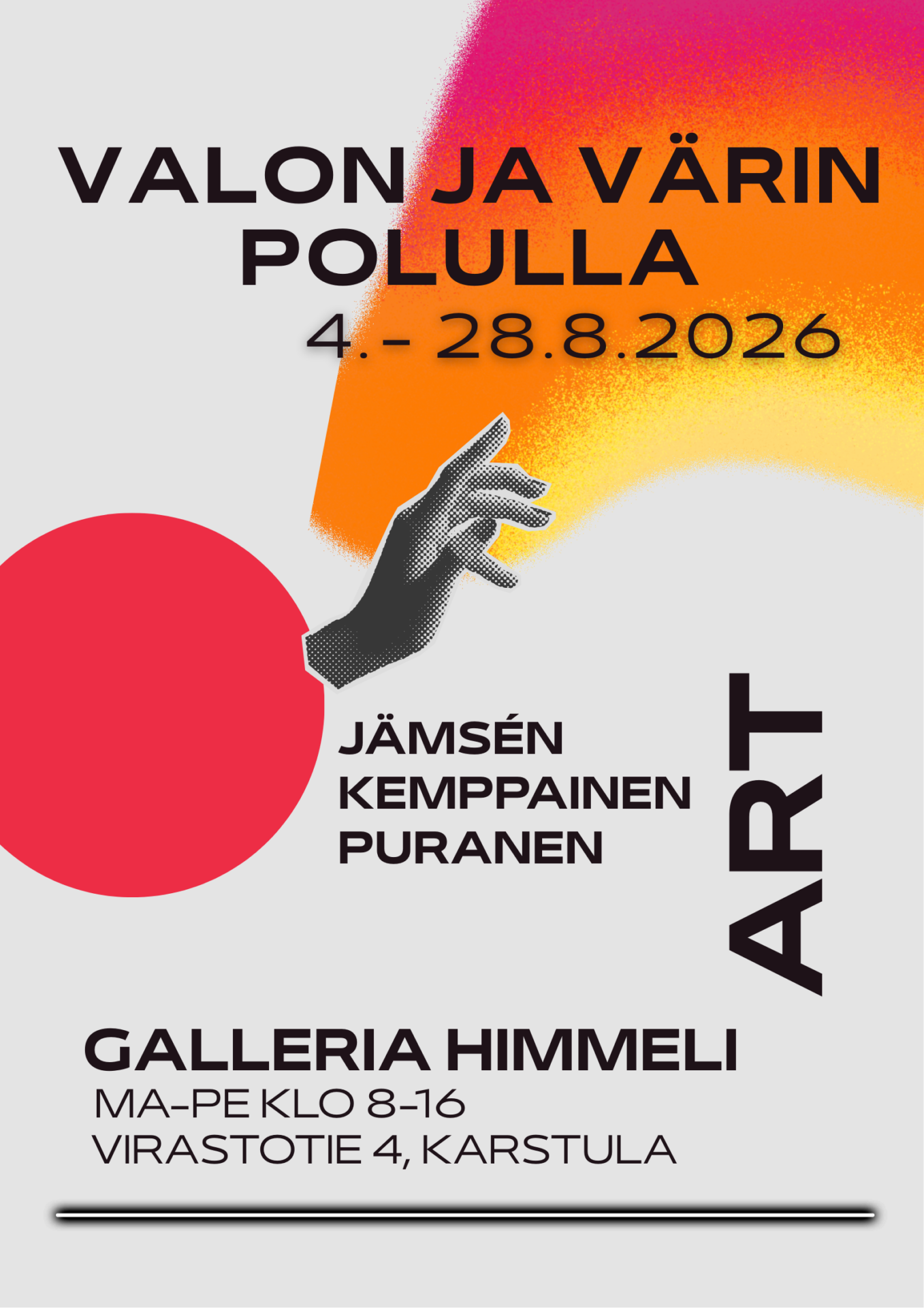 Elokuussa suuntaan kahden taiteilijaystävän kanssa Karstulaan. Valon ja värin polulla 4. – 28.8.