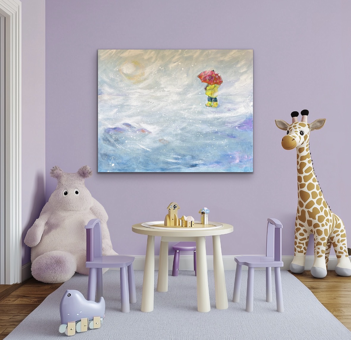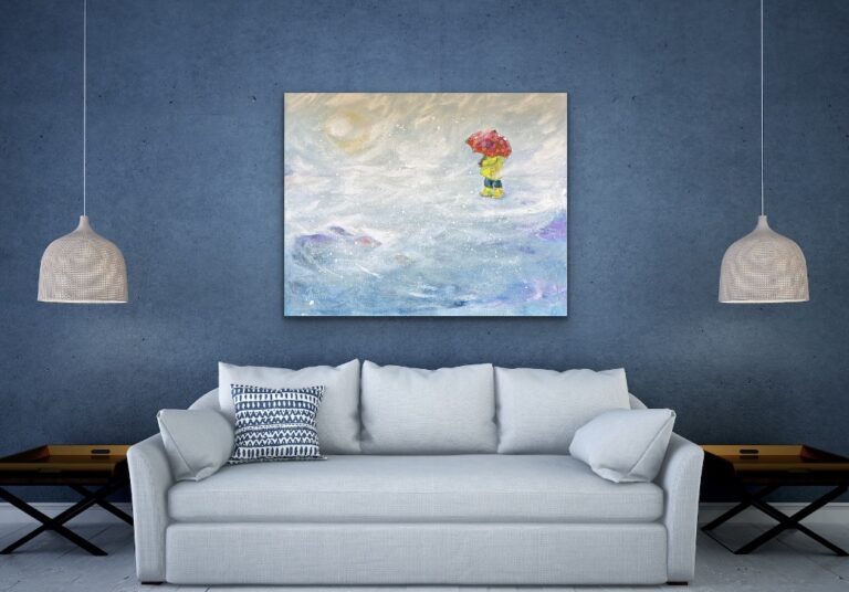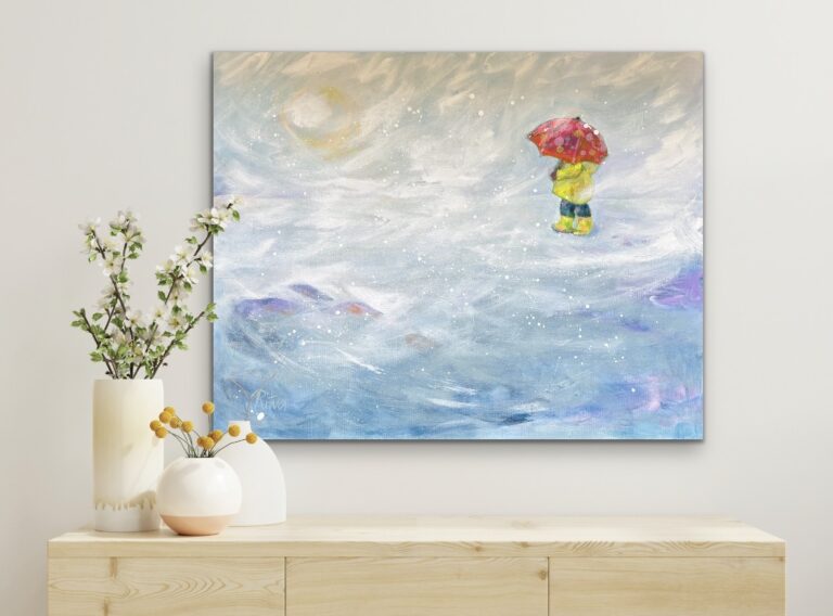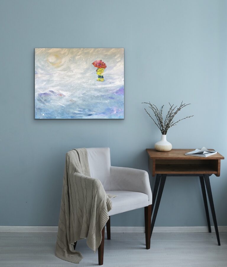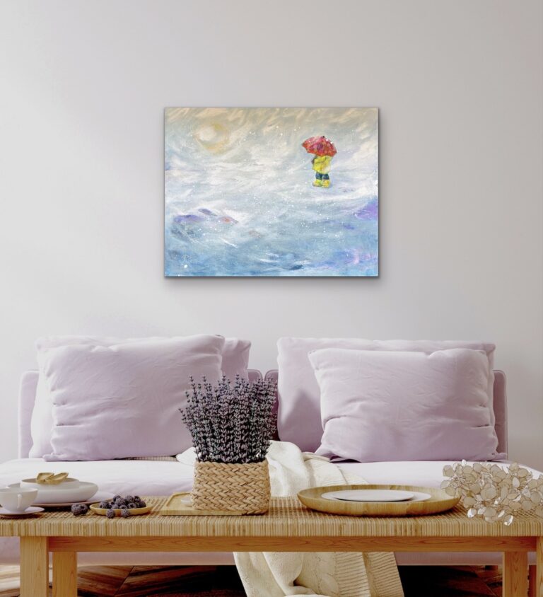 Maalaus muistuttaa siitä, kuinka kaikkein merkityksellisimmät hetket löytyvät hiljaisuudesta ja pienistä askelista. On myös rohkeutta uskaltaa kulkea eteenpäin vaikka polku välillä katoaisi sumuun.